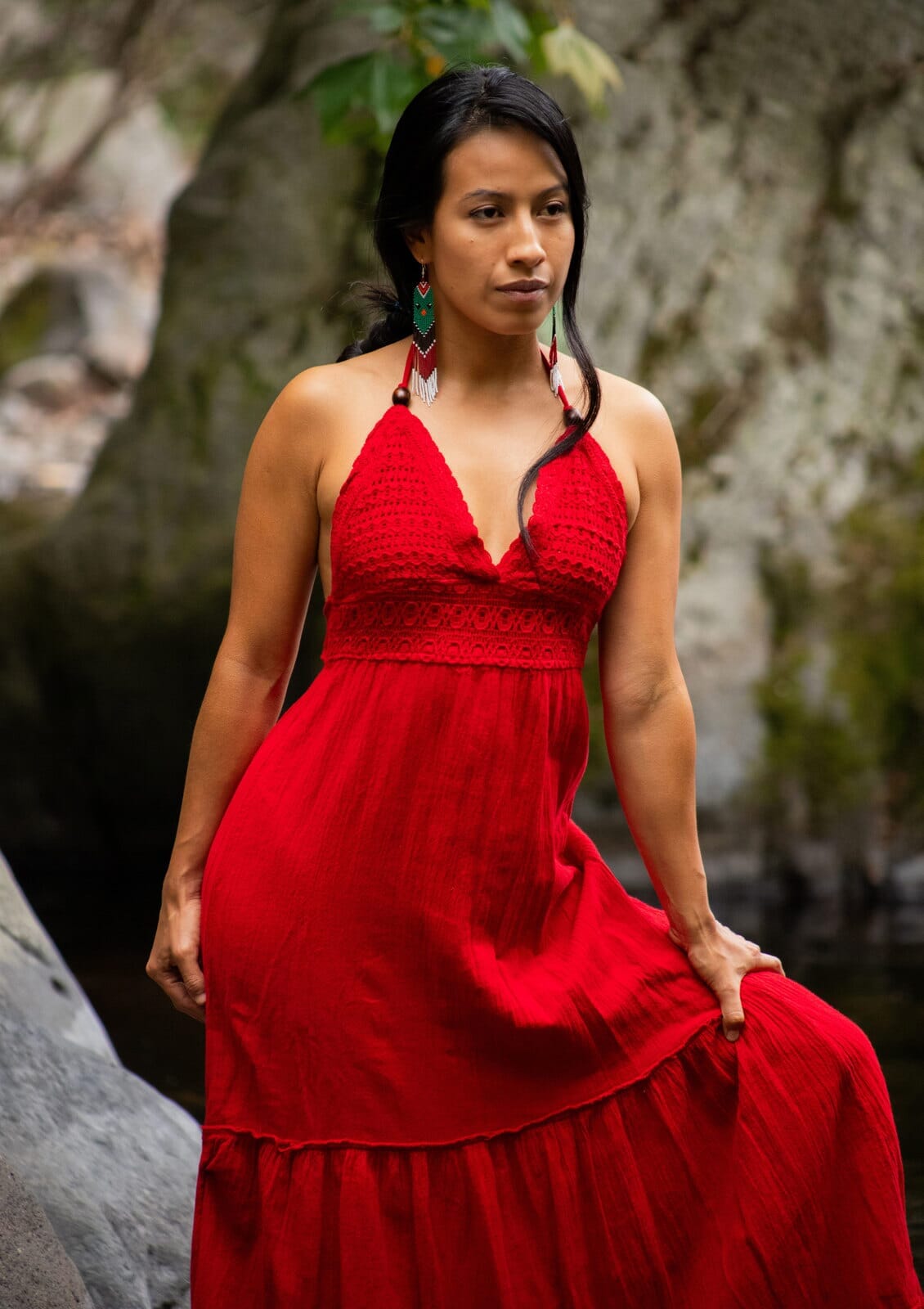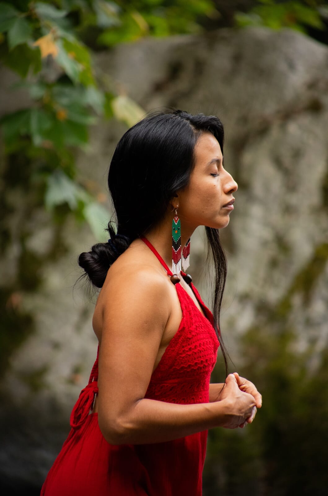 Bold yet lightweight, the Mimi Earrings are a striking statement piece that blends modern design with native-inspired artistry. Handmade with intricate beaded craftsmanship, these long earrings feature a white, red, and black body, with a vibrant turquoise "face" positioned at the top. The unique combination of colors and geometric pattern adds depth and character, while the lightweight design ensures comfort. With their handmade artistry, the Mimi Earrings bring an elegant touch of creativity and color to any outfit.