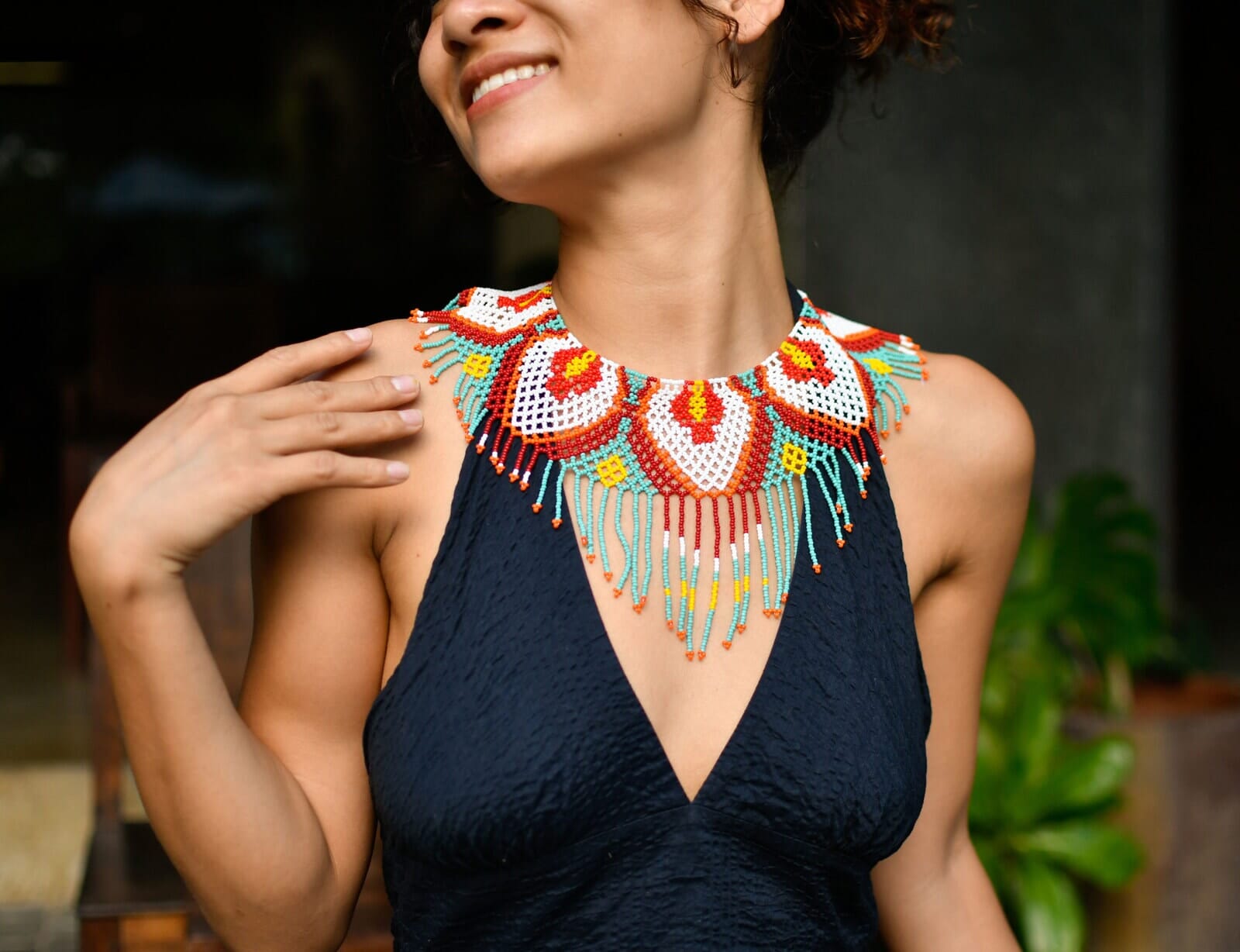 Sweet and vibrant, the Strawberry Fields Choker captures the essence of summer's bounty. Handmade with intricate beaded craftsmanship, this choker features rich red tones, reminiscent of freshly picked strawberries at their peak. The native-inspired design highlights the bright, bold color of the fruit, creating a statement piece that celebrates nature's beauty. Delicate yet striking, the handmade details make the Strawberry Fields choker a playful and elegant addition to any collection, bringing a touch of summer's warmth to your style.