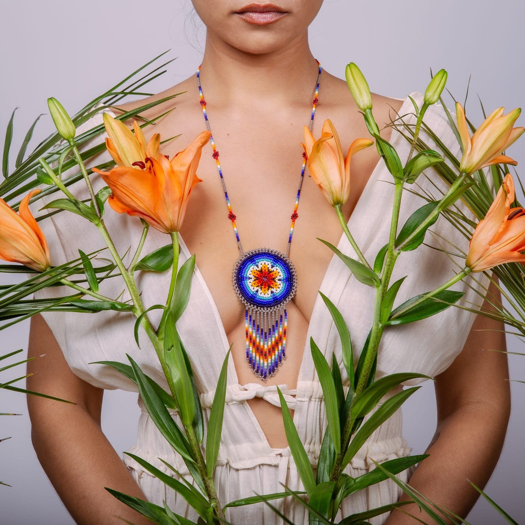 Our unisex Earth beaded necklace bag is the perfect mix of calming earth and sea tones that will soothe all of your worries! With a small pouch inside, this is perfect for that one thing you want to keep close to your heart.
