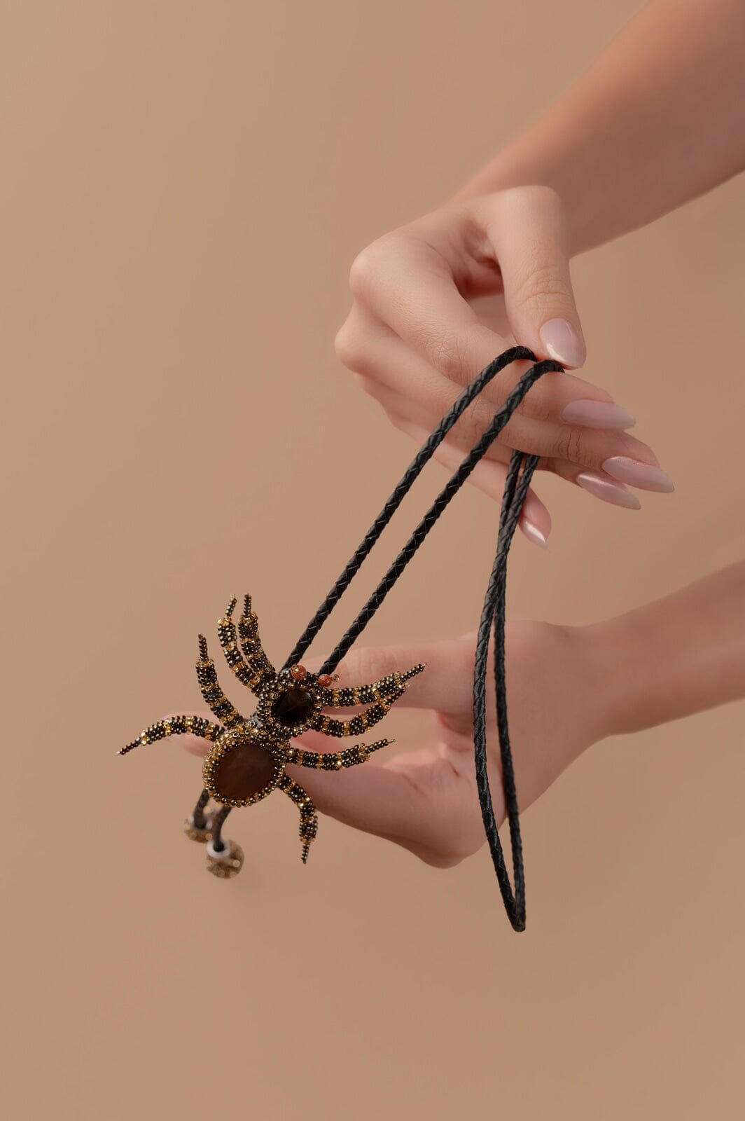 The Gold Weaver spider, one of nature’s most brilliant architects, is the inspiration for this crafty piece from our bolo tie collection. Build yourself a bigger and more beautiful world with the energy you receive from the Gold Weaver beaded bolo tie!