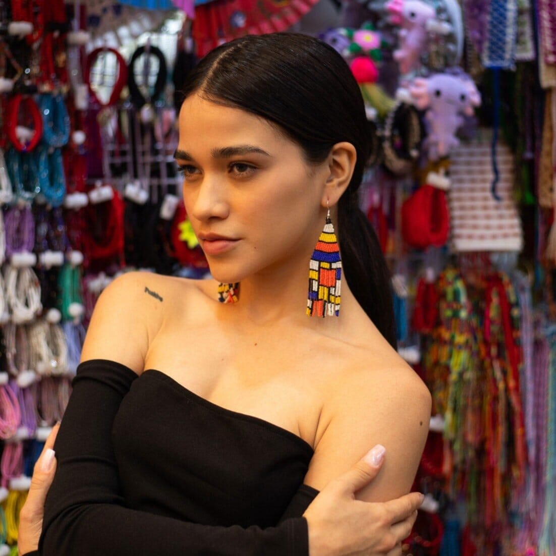 Piet mondrain Blocks colorful fringe handmade beaded earrings