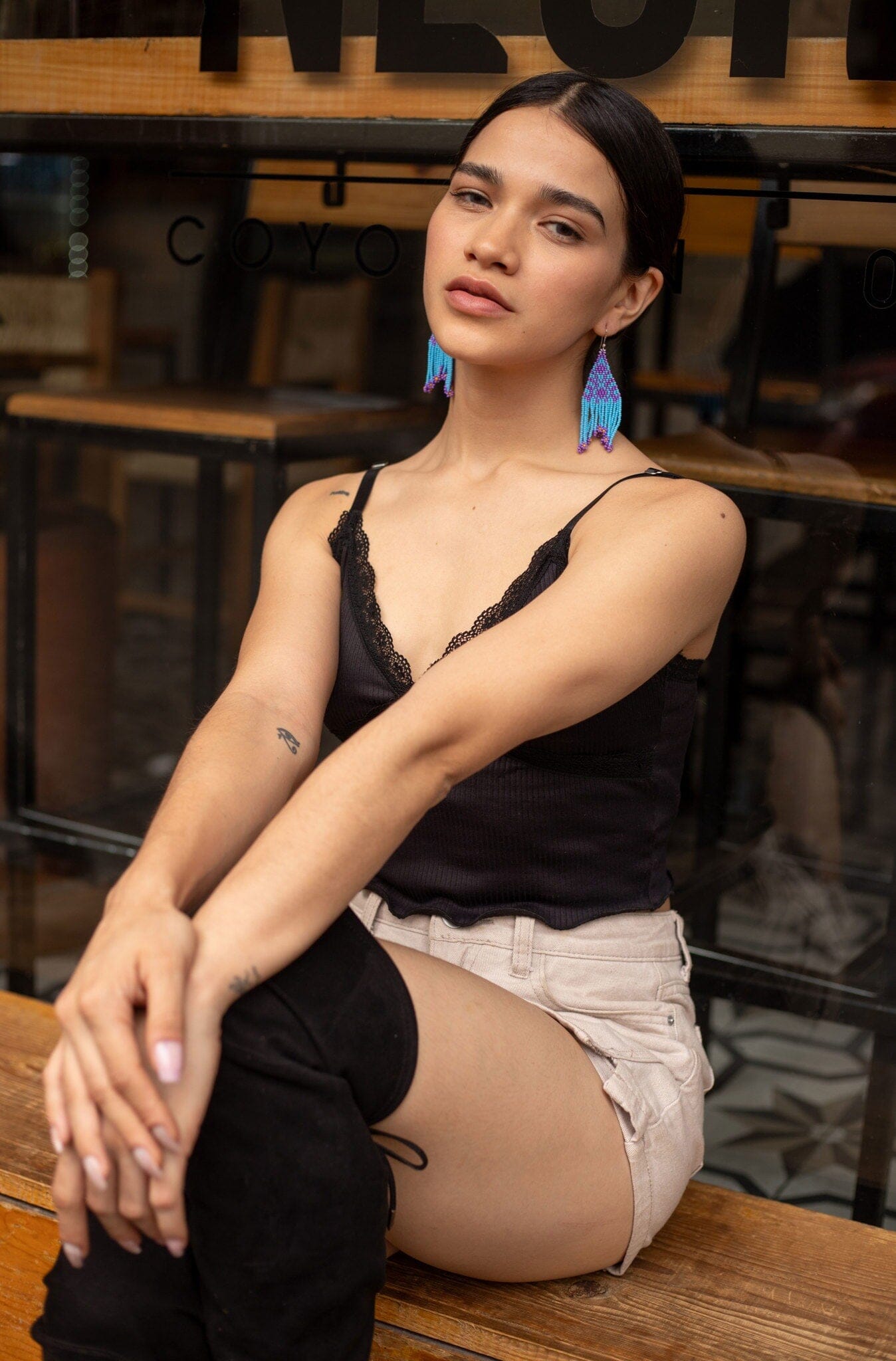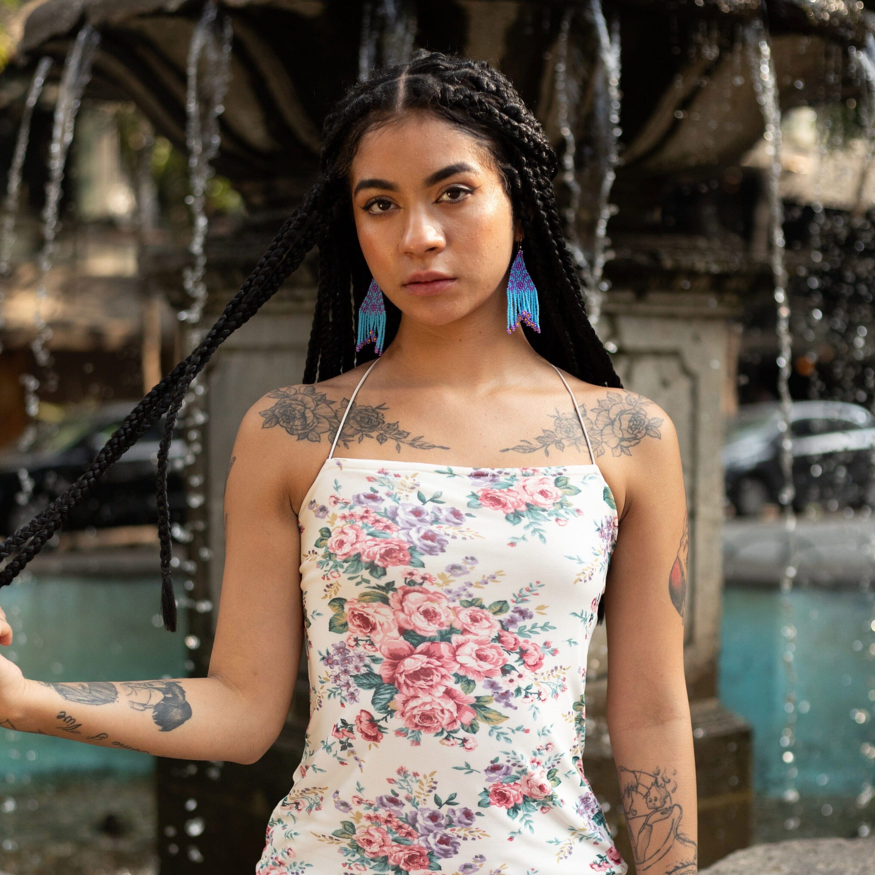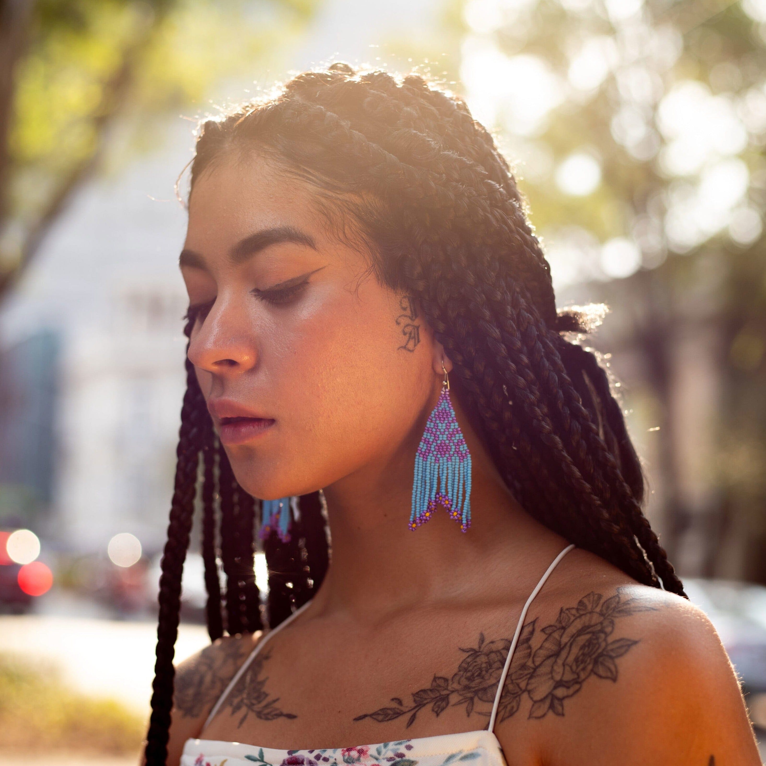 Indulge in the mouth-watering allure of our Uvas Moradas beaded earrings, deliciously combining light blue and soft purple hues. The delicate fringes are adorned with purple and yellow blossoms and evoke a bright, lush aesthetic that's impossible to resist. Elevate your style with this masterfully handcrafted beaded accessory that captures the essence of both elegance and temptation. Embellish your look with the enchanting beauty of Uvas Moradas beaded earrings and experience this tasty fusion of colors that are sure to turn heads.