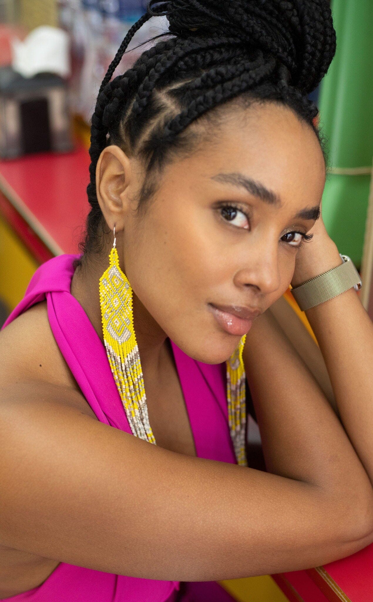 Command attention like the very first vibrant yellow blooms of spring with our dramatic Daffodil Prism beaded earrings. Inspired by the scientifically named “Narcissus” flower, the bloom was named after the handsome hunter in Greek Mythology who became totally captivated by his own reflection. You’ve been warned: these masterfully handmade earrings might just have the same effect on you once you put them on! Nothing like a loud yellow long beaded fringe to turn heads and brighten any ensemble.