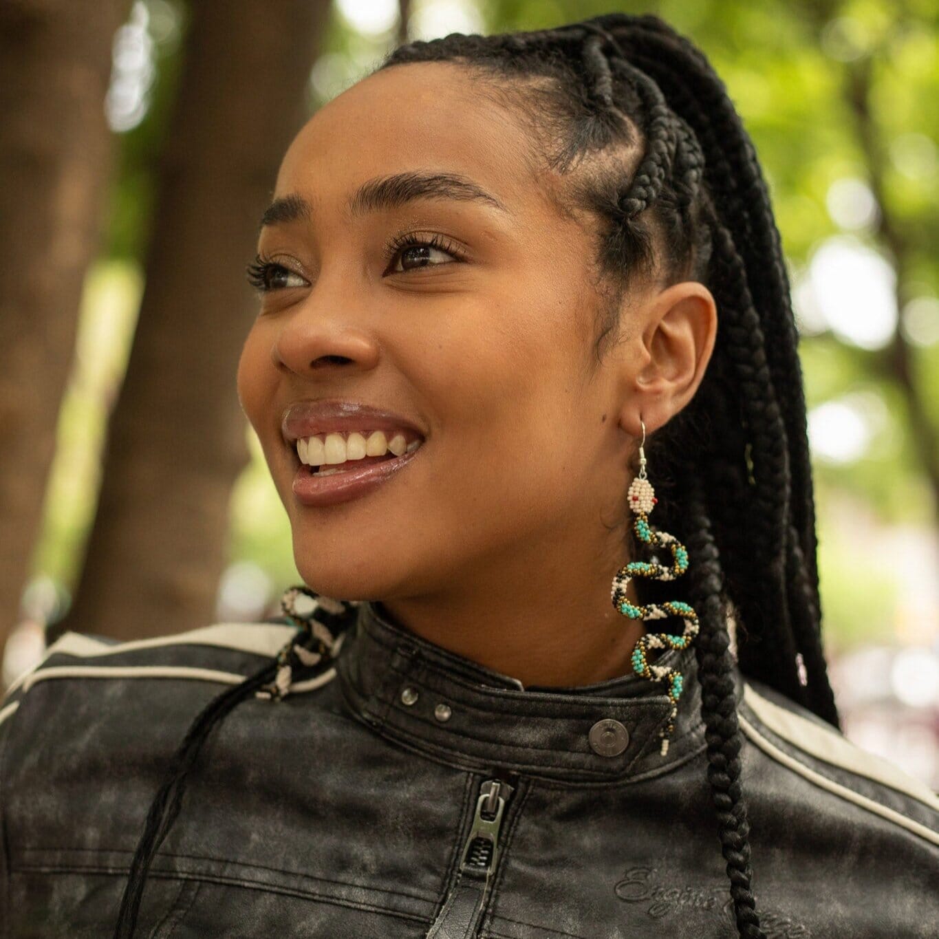 Invoca la sabiduría y el poder de Atenea adornándote con la serpiente que ella portaba. Deja a todos sin aliento mientras estas escamas turquesa se retuercen y brillan mientras caminas, elevada y protegida por estos poderosos serpientes. Estos pendientes de chaquira, tan realistas, están listos para deslizarse y atraer miradas allá donde vayas.