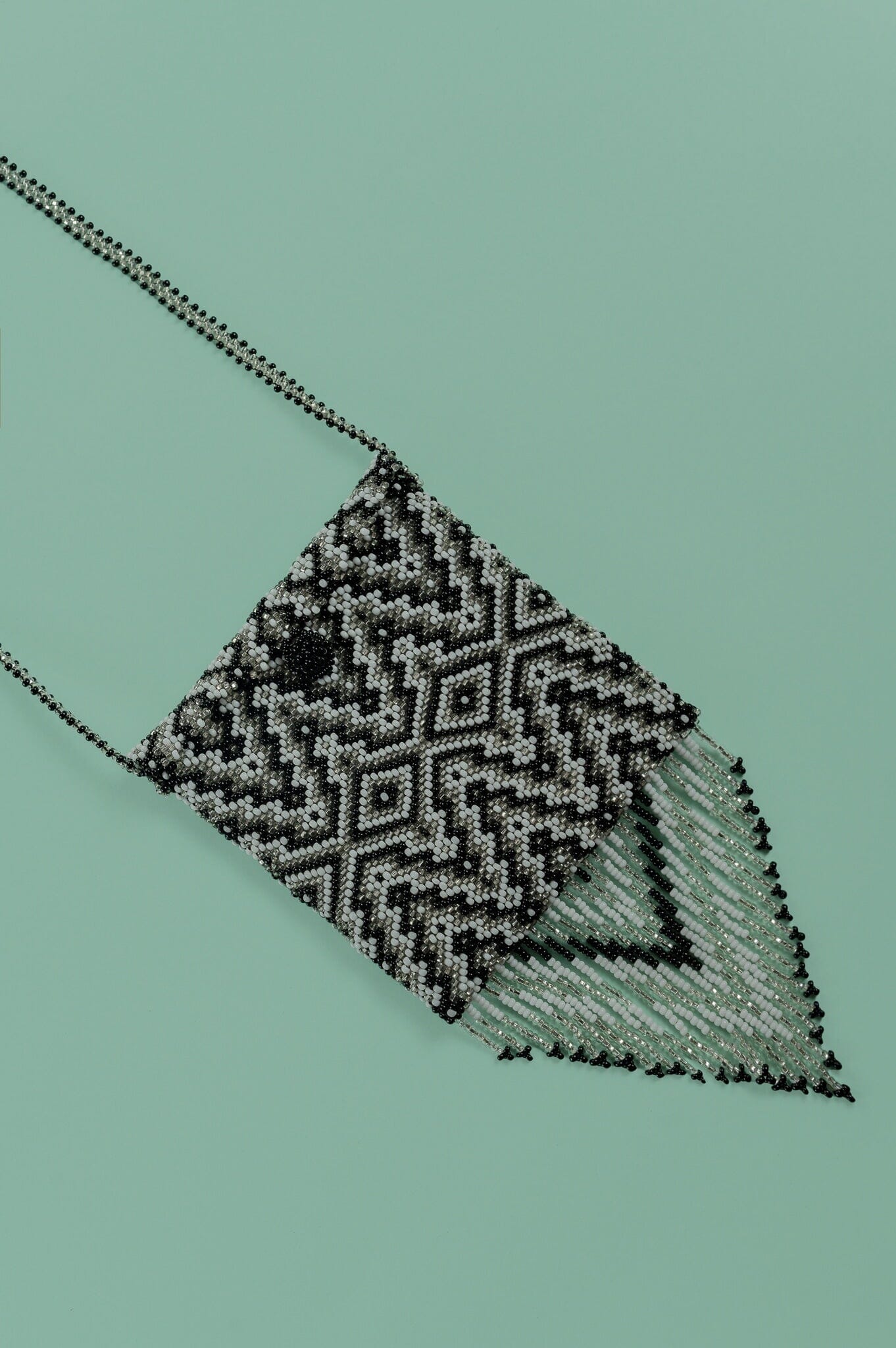 Descubre el misterioso encanto de la Black Onyx Medicine Bag, donde la elegante audacia se encuentra con el estilo atemporal. Hecha a mano con un deslumbrante patrón abstracto de chaquiras negras, blancas y plateadas, esta bolsita cruzada captura la esencia del cielo nocturno, brillando con un toque de energía cósmica. Con su diseño intrincado y fleco llamativo, este impactante accesorio añade un toque de sofisticación y misterio a cada aventura.