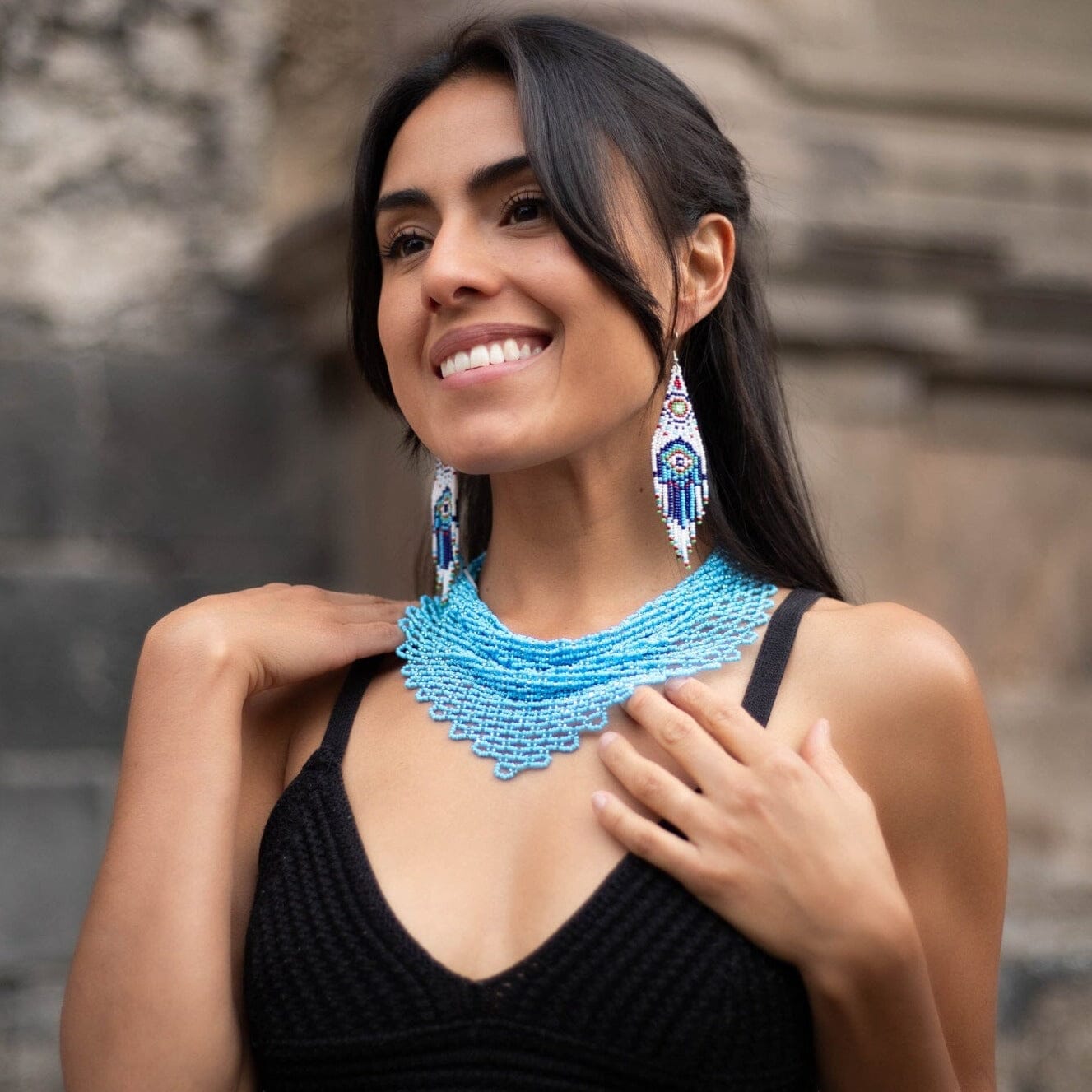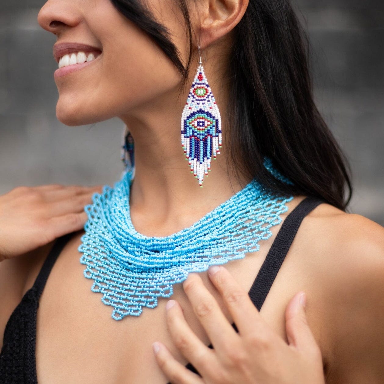 Fine delicate beaded Blue Hamsa Earrings Mother Sierra