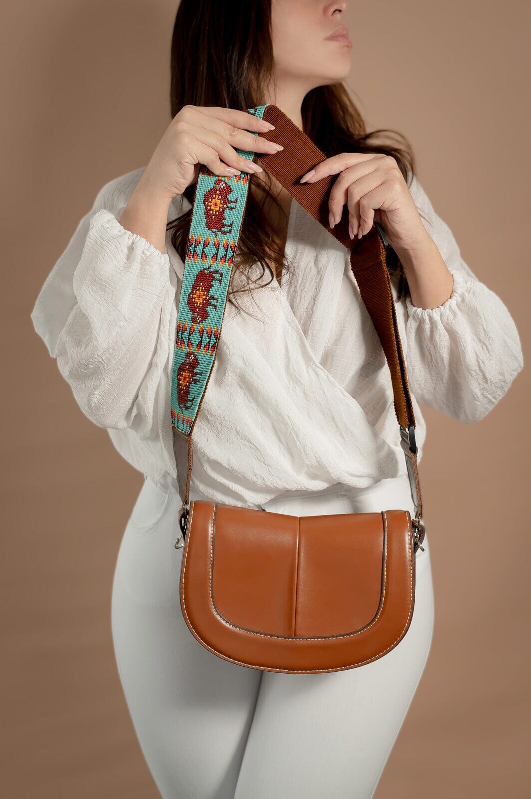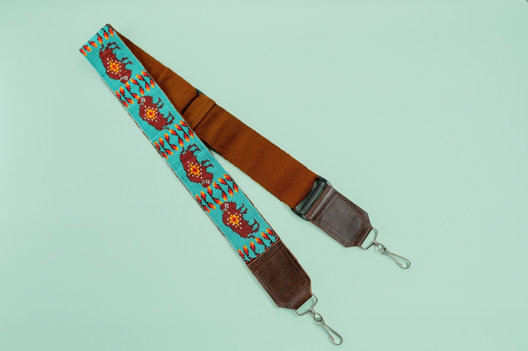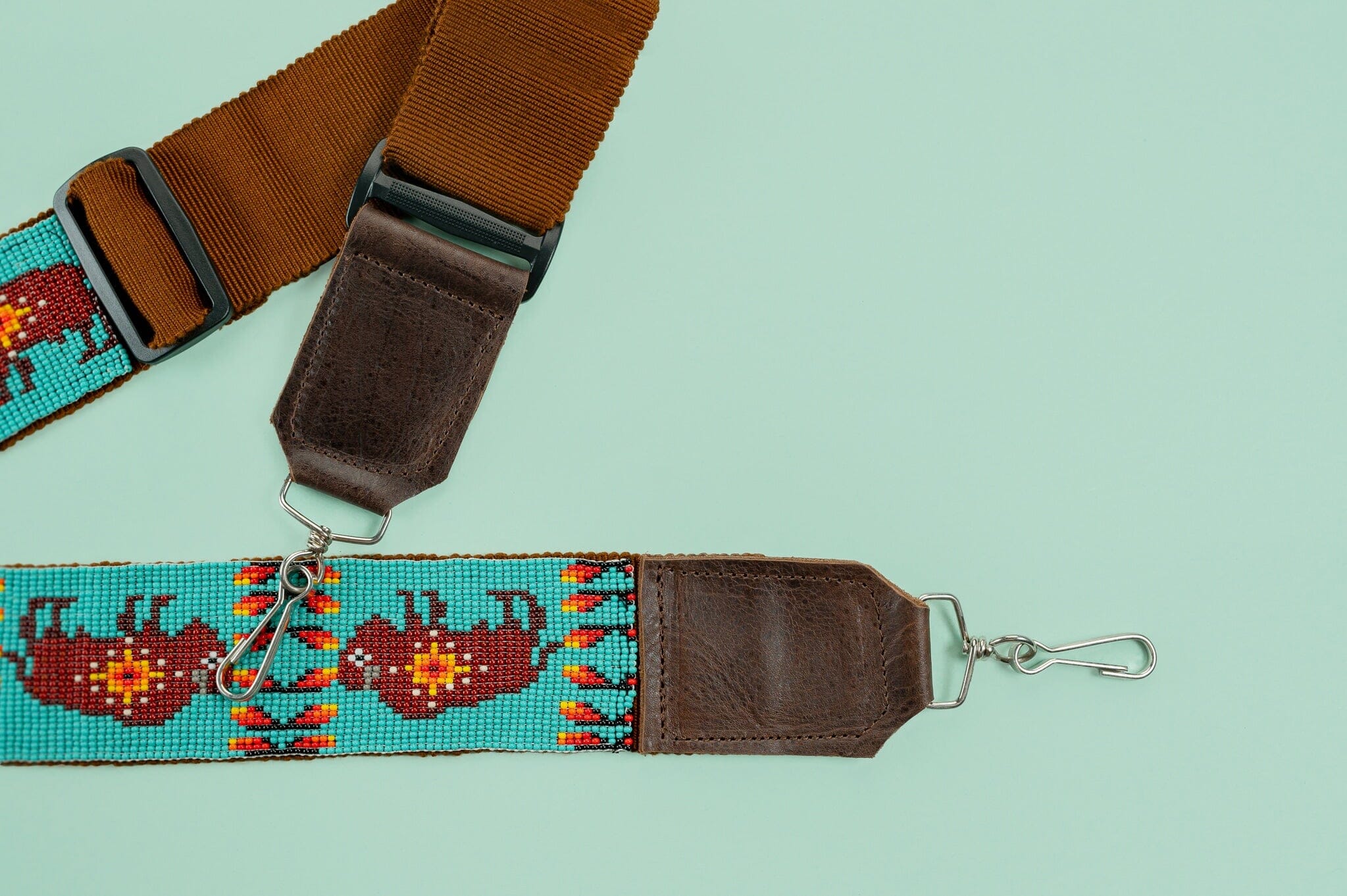 Domina las llanuras con la correa para bolso Wild Buffalo, un accesorio audaz que captura el espíritu indomable de la naturaleza salvaje. Hecha a mano en Guatemala, esta correa presenta un poderoso patrón de chaquiras inspirado en el majestuoso búfalo, combinando tonos tierra con una vibrante energía salvaje. Con extremos de cuero resistentes, es una compañera resistente para cada viaje, personificando la fuerza, libertad y belleza cruda de la pradera mientras llevas tu equipo con orgullo.