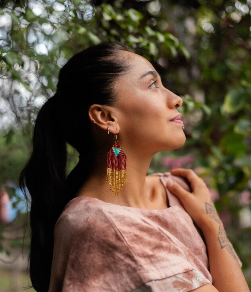 Embrace your inner goddess with our Angkor Wat beaded earrings, designed to inspire awe and envy. These elegant, earthy earrings feature a captivating mix of muted tones and vibrant colors, perfect for making a statement. Step into the grandeur of history, and let the Angkor Wat in Cambodia, the largest religious monument in the world, serve as your muse. Elevate your style with these unique handmade earrings today!