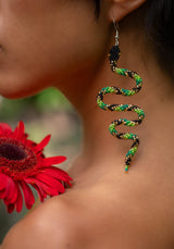 Capture Aphrodite's timeless allure with our serpentine Aphrodite beaded earrings. These captivating serpents symbolize both passion and transformation, a beaded ode to the goddess herself. Wear these snakes proudly and become the embodiment of love's eternal dance as they dangle from your beautiful likeness.