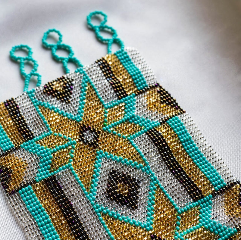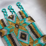 If you are searching for a celestial masterpiece that captures the essence of the cosmos, look no further than the Aquarius Super Nova beaded bracelet. Gold and silver converge in a stunning wide cuff, harmonizing with shades of aqua teal and dark relief, weaving a mesmerizing pattern that embodies the spirit of the water bearer Aquarius, and the boundless swirling depths of the universe. With the Aquarius bracelet, you are wearing a dazzling symbol of infinity, a tribute to the limitless wonder above.