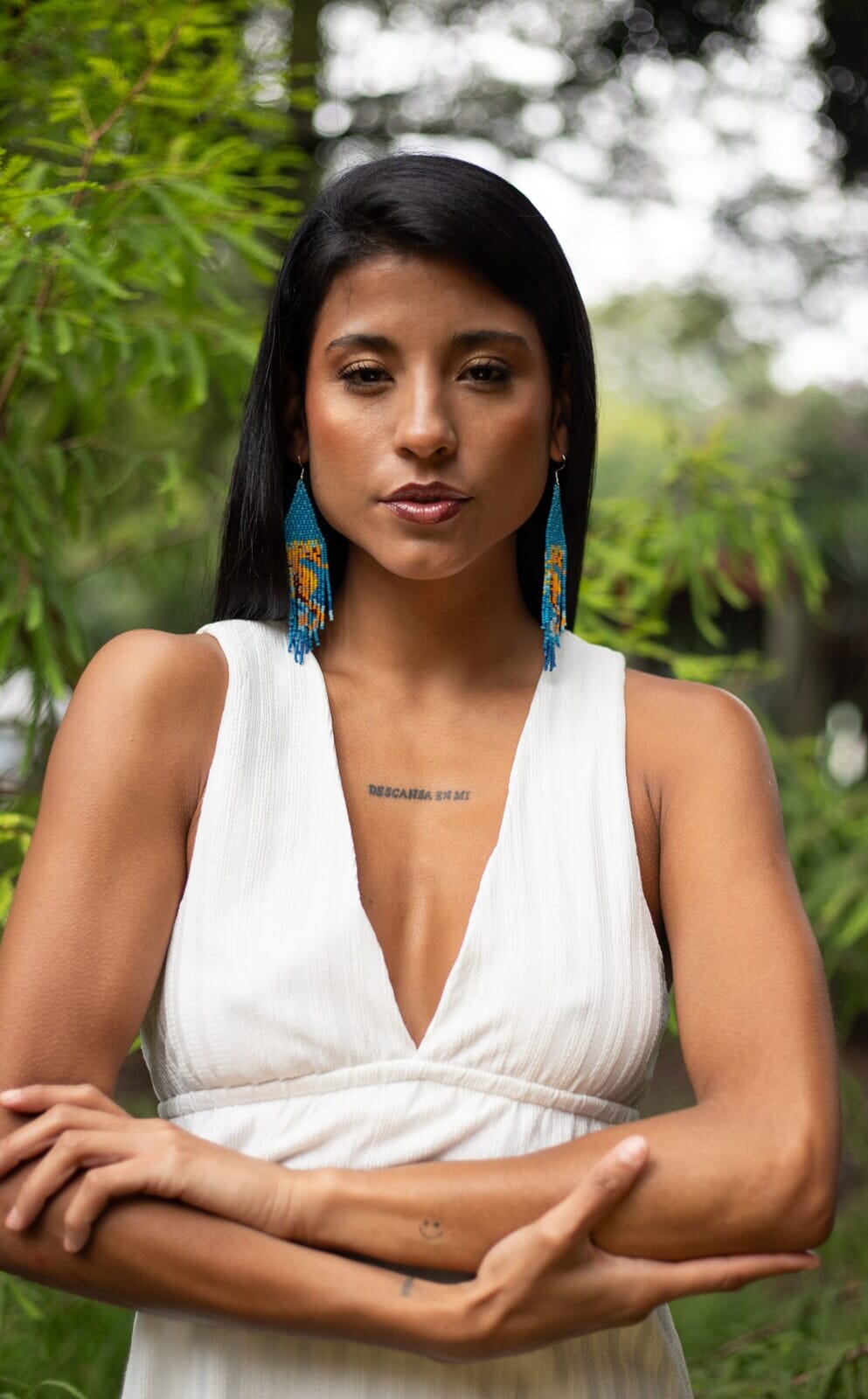 Dive into the deep blue with the Ariel beaded earrings, a stunning tribute to the elegance of the seahorse. Handmade with intricate beading, these earrings capture the graceful movement and beauty of the ocean’s most enchanting creature. In an array of soft blues and accents of coral, the design evokes the serene yet vibrant underwater world. Each pair is carefully crafted by hand, reflecting native-inspired artistry that blends nature’s colors with timeless elegance. The Ariel earrings are perfect for those who appreciate the harmony of the sea, offering a unique, beaded, and handmade statement piece for any outfit.