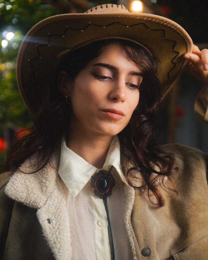 Whether you’re attending a formal event or seeking to add a touch of mystique to your everyday attire, let the Black Rose beaded bolo tie become your emblem of true elegance. Out of a shadowy moonlit garden blooms the black rose, velvety dark and mysterious, embellished by passionate red droplets of beads among the midnight hues. Let its spell befall you, adorn yourself with this bold and captivating handcrafted necktie and leave a lasting impression wherever you go.
