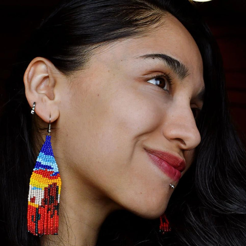 The stunning landscape of Mexico's Sonoran desert is one of the most recognizable in the world. Towering granite mesas, the iconic saguaro cactus, and sunsets that radiate the entire chromatic spectrum at once, its beauty is unmatched... until now! With our Cactus in the Desert beaded earrings, you can display a pair of these mythical panoramas every time you turn your head. Experience nature's grandeur with the allure of the Sonoran desert encapsulated in these exquisite handmade pieces.