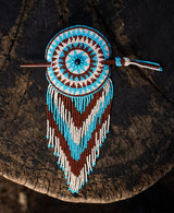 Handmade cream tiara round light blue brown white beaded hair barrette and pin statement piece native american jewelry