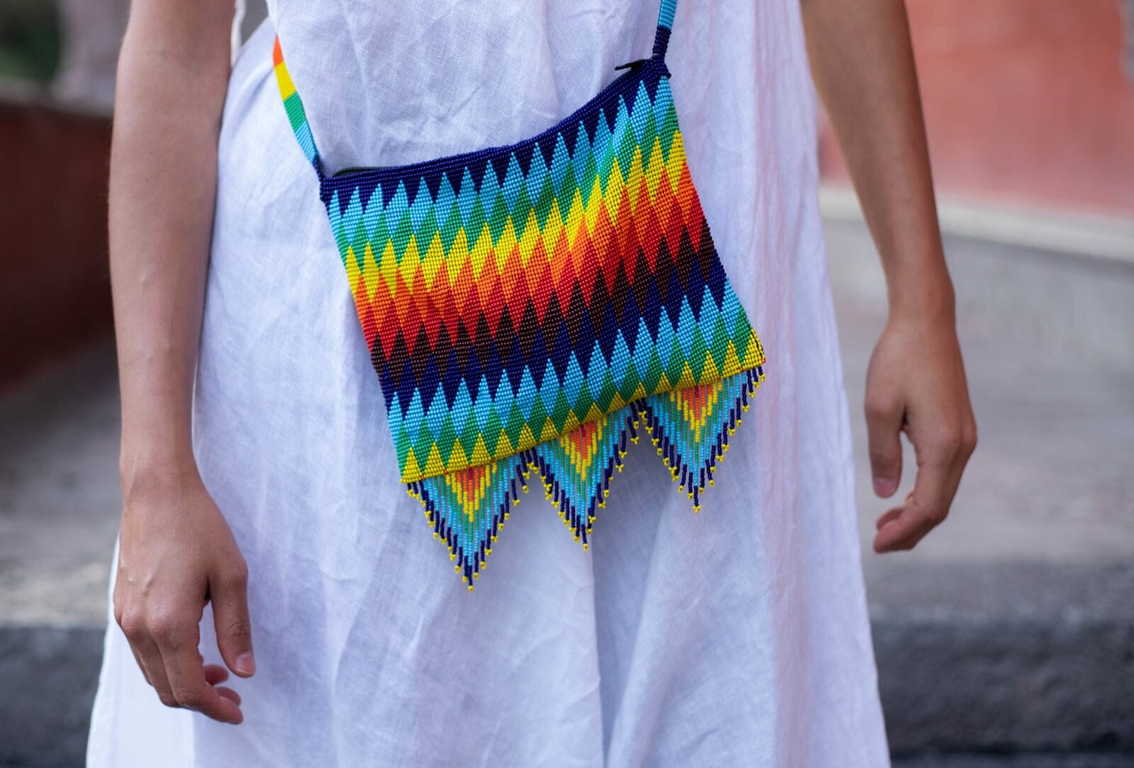 Introducing the Forbidden Rainbow Beaded Purse, a mesmerizing accessory that defies conventional patterns with its abstract rainbow parallelogram design. Crafted with meticulous beadwork, this purse is a wearable canvas of vibrant hues that blend and dance in a forbidden symphony of color. Elevate your style with this daring accessory that transcends the ordinary, turning heads and making a bold statement wherever you go. The Forbidden Rainbow Beaded Purse is not just a fashion accessory; it's an artistic expression of individuality and the allure of the unconventional.
