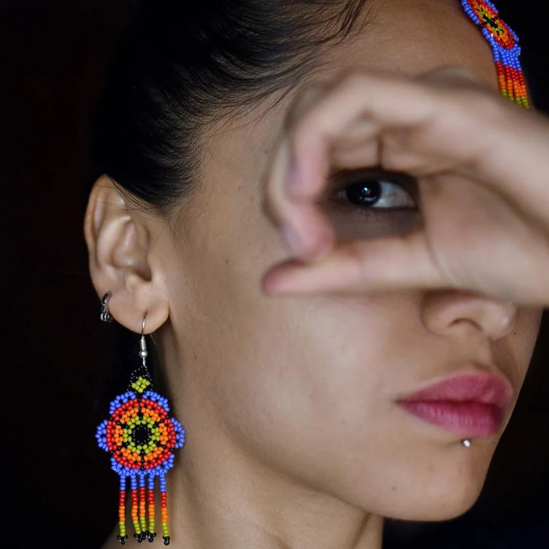 Elevate your spirit with our Peyote beaded earrings, inspired by the sacred cactus that bridges the Huichol people to their ancestors and the spirit realm. With a name derived from Aztec meaning "to glisten," these psychedelic floral adornments will make you shine. Step into a dreamlike state with our Peyote earrings, embracing their mystical allure. 🌵🌼