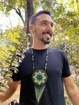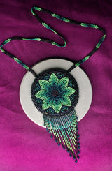 Take a trip to La Sierra Madre with a beaded Peyote Necklace Bag lying on your chest to feel as vibrant as those bright green colors!