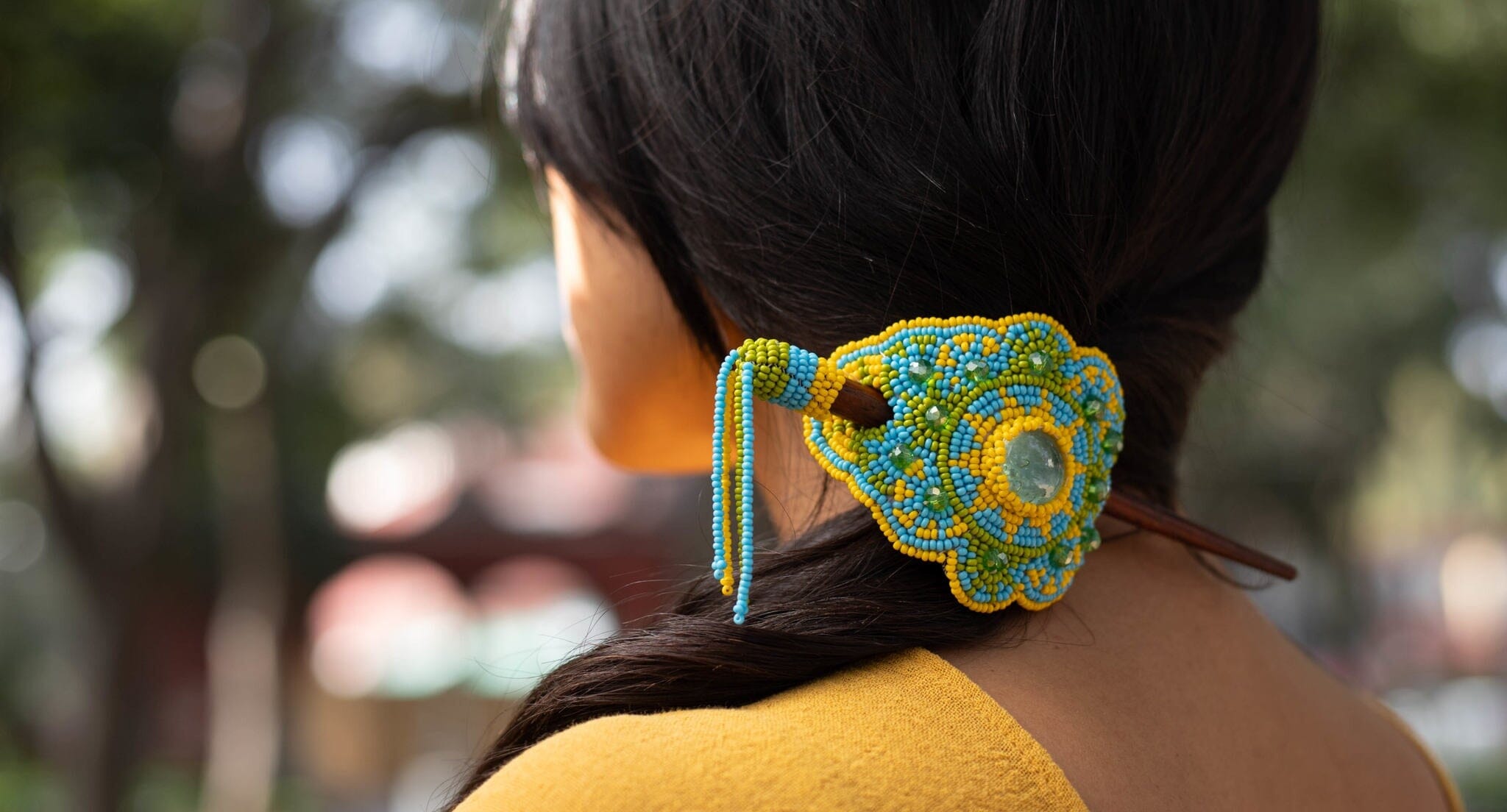 Ascend to new heights with our Sky High beaded hair barrette, a breathtaking tribute to boundless skies and soaring dreams. Its hues blend like whispers of clouds against a sunlit horizon. Each bead embodies the infinite possibilities and untamed spirit of the open sky.