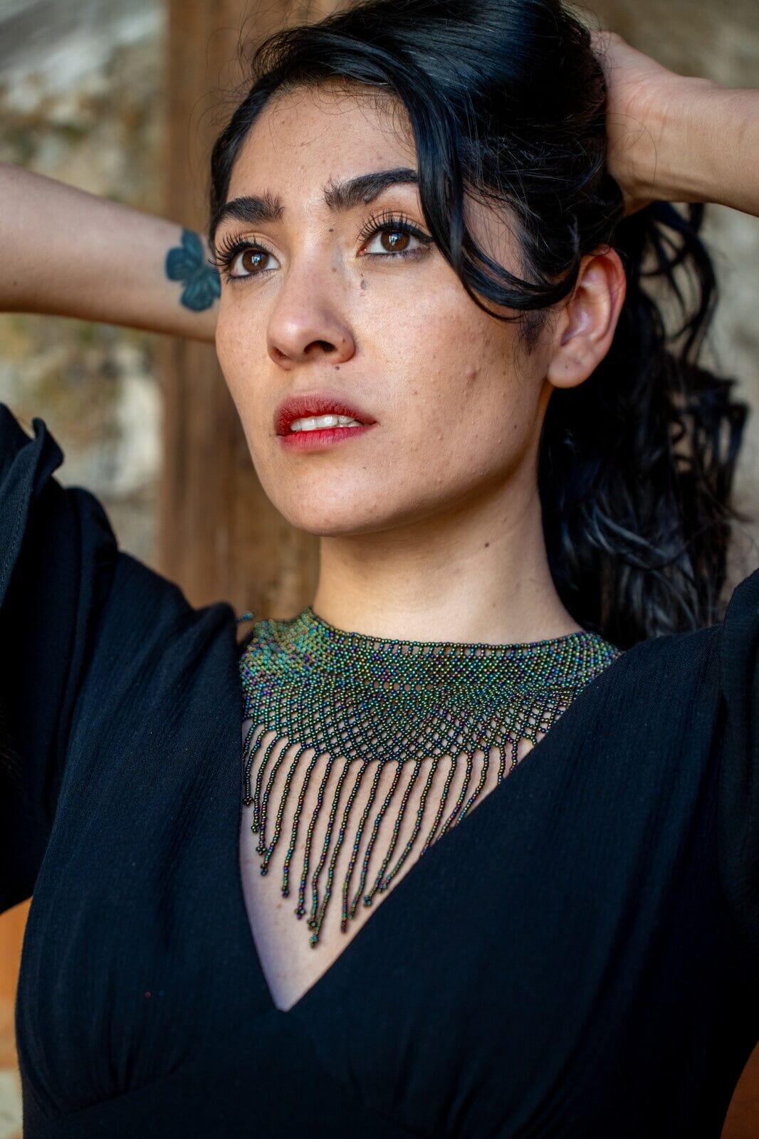 Behold the dreamy Tahitian Eyelet beaded choker, a tribute to the lush beauty of Tahiti's tropical shores with its mesmerizing blend of verdant greens and azure blues. This gorgeous fringe necklace captures the essence and allure of the island's vibrant landscapes. Adorn your neckline with a touch of natural splendor with the Tahitian Eyelet beaded choker. 🌴🌊✨
