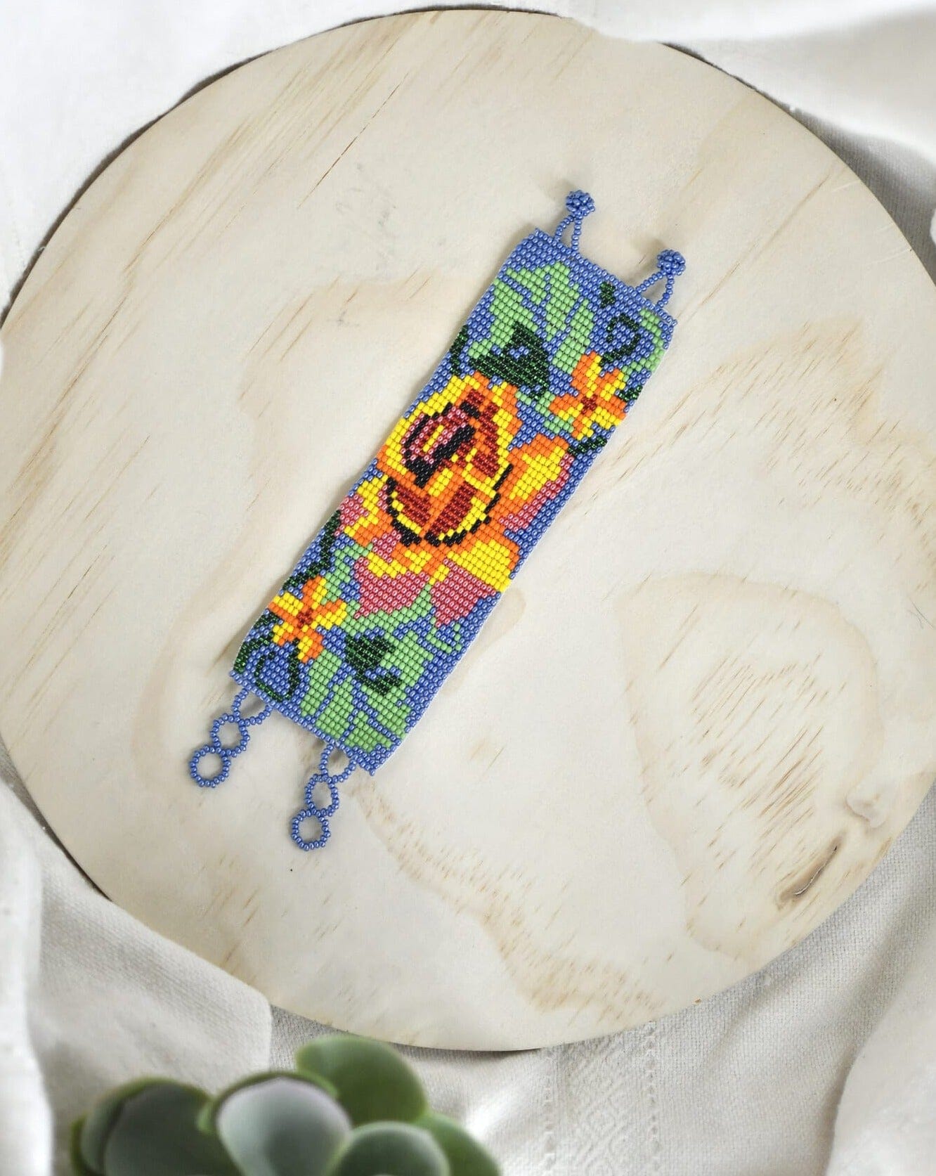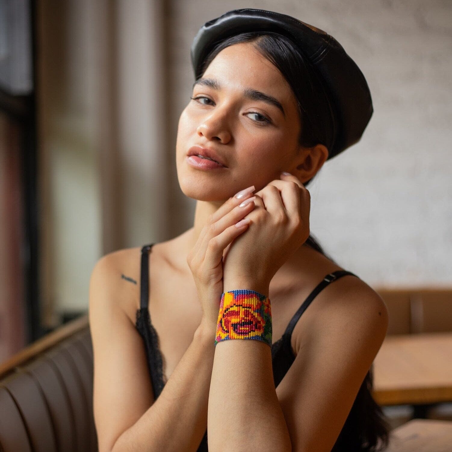 The depth and beauty of the Texas Rose beaded bracelet are almost as big and wide as the state itself. Golden yellow petals unfurl through proud pink shades against a big blue Texas sky. It is a loud symbol of devotion, a passionate emblem, and a warm reminder of the unwavering presence and spirit of the Yellow Rose. Embrace the beauty of this remarkable embodiment of artisan craftsmanship and discover the perfect piece to adorn your wrist with the Texas Rose.